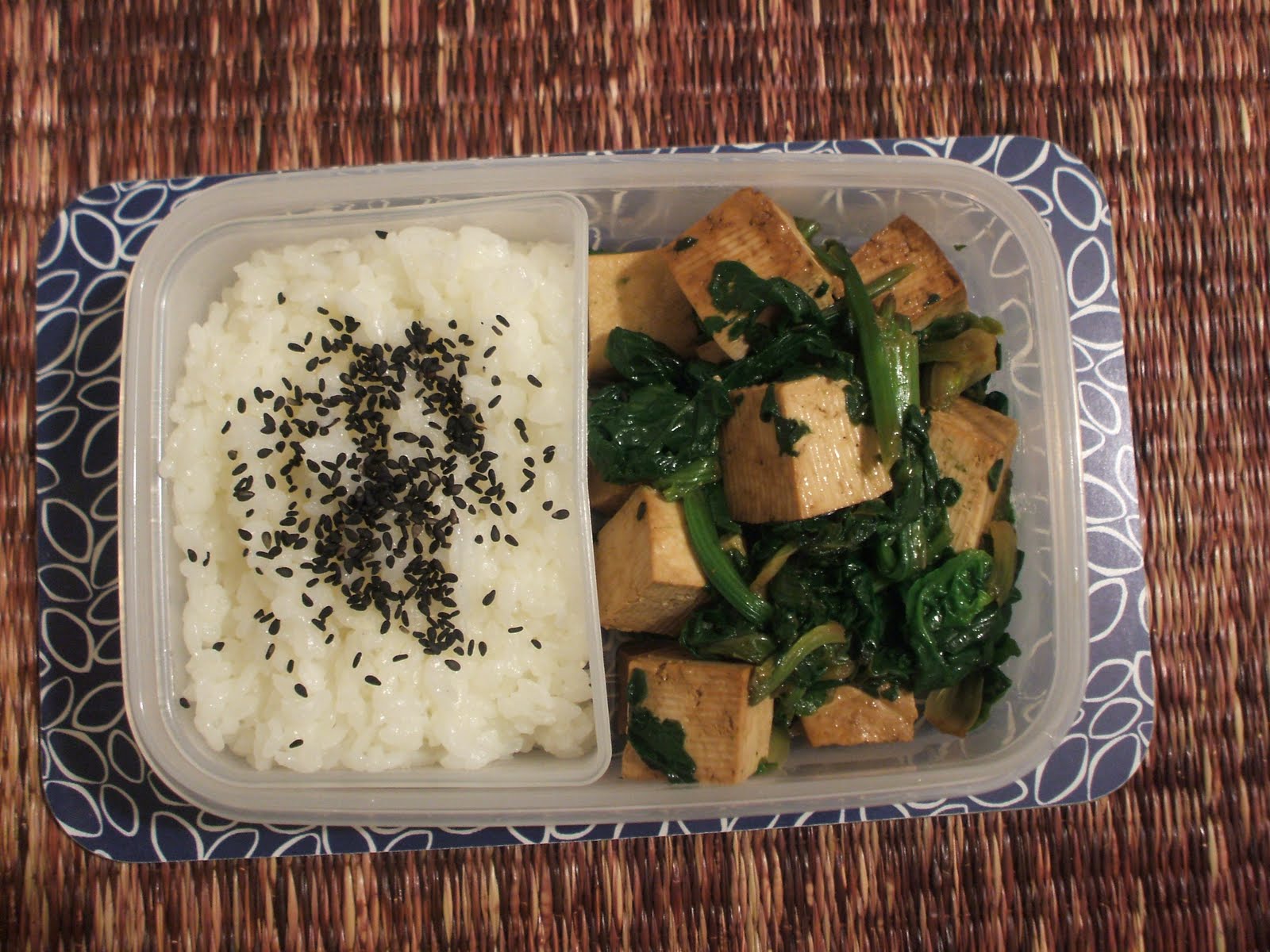 LUNCH--- bento: Japanese rice with sesame seeds | spinach + tofu